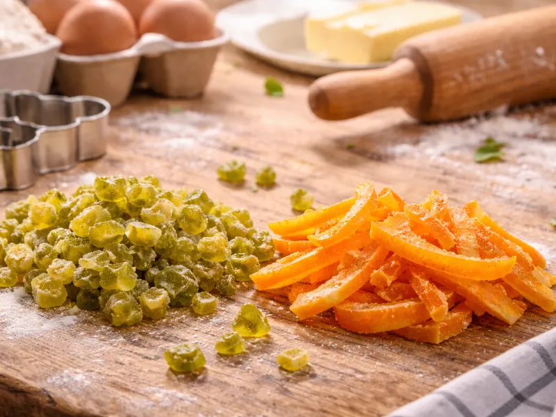 Zitronat (Succhade), halbe Schalen kaufen Zitronat, auch als Succade bezeichnet, ist eine beliebte, traditionelle Zutat in der weihnachtlichen Backstube. Es handelt sich dabei um kandierte Schalen der Zedratzitrone, die durch ihren intensiven Geschmack und ihre feine Süße überzeugen. Bei TALI können Sie frisches Zitronat am Stück, bzw. halben Schalen, kaufen – direkt aus den besten Anbaugebieten Italiens. Bestellen Sie echtes, italienisches Zitronat bequem in unserem Onlineshop und verleihen Sie Ihren Rezepten eine besondere Note.Verwendung und Verarbeitung in der KücheZitronat wird traditionell in Backwaren wie Stollen, Früchtebrot und Lebkuchen verwendet. Es verleiht diesen eine charakteristische, leicht herbe Süße und eine angenehme Textur. Auch in Marmeladen oder Konfitüren kann es für ein besonderes Aroma sorgen. Für die Verwendung wird es in der Regel in kleine Stücke geschnitten und unter den Teig oder die Masse gemischt.Typische Gerichte mit Zitronat Christstollen: Zitronat ist eine der Haupt-Aromazutaten des klassischen deutschen Stollens und sorgt für den unverwechselbaren Geschmack dieses festlichen Gebäcks. Früchtebrot: Neben Trockenfrüchten und Nüssen ist Zitronat ein wichtiger Bestandteil dieses saftigen Brots, das besonders in der Winterzeit beliebt ist. Lebkuchen: Die kandierte Zitronenschale sorgt für die aromatische Frische, die Lebkuchen und andere Weihnachtsplätzchen so besonders macht.Herkunft, Herstellung und Inhaltsstoffe von ZitronatDas Zitronat von TALI besteht aus lediglich vier Zutaten: Die Schale der Sukkade, Glucose-Fructose-Sirup, Zucker und Zitronensäure. Ausgewählte, vollreife Zedratzitronen werden geschält und diese Schale sorgfältig in einem starken Zuckersirup kandiert. Das Ergebnis sind halbe Schalen feinstes Zitronats, die dank der noch enthaltenen ätherischen Öle ein intensiv zitroniges Aroma besitzen. Durch das Kandieren sind die Succade-Stücke sehr süß und lange haltbar. Die Zitronen für das Zitronat von TALI stammt aus Italien. Dort werden die Zedratzitronen vor allem im äußersten Süden, in Kalabrien und Sizilien angebaut. Die Tradition der Sukkade-Herstellung hat in Italien eine lange Geschichte, und auch heute noch wird das Zitronat nach alten, handwerklichen Methoden verarbeitet.Zitronat, halbe Schalen: Aussehen und AromaZitronat am Stück besticht durch seine leuchtend grüne Farbe und seine halbfeste, leicht klebrige Konsistenz. Die kandierte Zitronenschale hat ein intensives, zitroniges Aroma mit einer feinen Süße, die sie zu einer unverwechselbaren Zutat in vielen Rezepten macht. Das frische, leicht herbe Aroma bleibt auch nach dem Backen oder Kochen erhalten und verleiht den Gerichten eine besondere Frische.BotanikZitronat wird aus der Schale der Zedratzitrone (Citrus medica) gewonnen, die zur Familie der Rautengewächse (Rutaceae) gehört. Man geht davon aus, dass Zitronatzitronen zu den ersten auf dem europäischen Kontinent angebauten Zitrusfrüchte gehören. Der Zedratzitronenbaum erreicht eine Höhe von etwa drei bis vier Metern und bildet eine unregelmäßige Krone. Seine Blätter sind oval, mit stumpfer Spitze und gezahntem Blattrand. An den Blattachseln besitzt der Zedratzitronenbaum kurze, dicke Dornen.Die begehrten Früchte entstehen aus den duftenden, weißen Blüten. Sie sind meist oval, mit einer für Zitronen typischen Spitze und können bis zu 25 cm Länge und ein Gewicht von rund 4 kg erreichen. Da Zitronatzitronenbäume stets neue Blüten entwickeln, sind in der Regel jederzeit erntereife Früchte vorhanden. Insofern besitzt diese Frucht keine Erntezeit im eigentlichen Sinne. Im Gegensatz zu den meisten anderen Zitrusfrüchten, besitzen Zitronatzitronen nur wenig Fruchtfleisch, das zudem wenig Saft enthält und meist sehr bitter schmeckt. Dem gegenüber steht eine dicke, aromatische Schale bekannt, die sich ideal zur Kandierung eignet. Entscheiden Sie sich für hohe Qualität und bestellen Sie frisches Zitronat am Stück bei TALI.Orangeat als halbe Schale – Lieferbar in verschiedenen Verpackungsgrößen:Nach Ihrer Bestellung wird das Zitronat als halbe Schalen, frisch vom Stück geschnitten und abgewogen. Die Verpackungen variieren von 200 g-Dose bis 4 kg-Karton.Die Farbe von Zitronat kann natürlicherweise von gelb bis dunkelgrün variieren, abhängig von der Ernte und vom Reifegrad der Früchte.